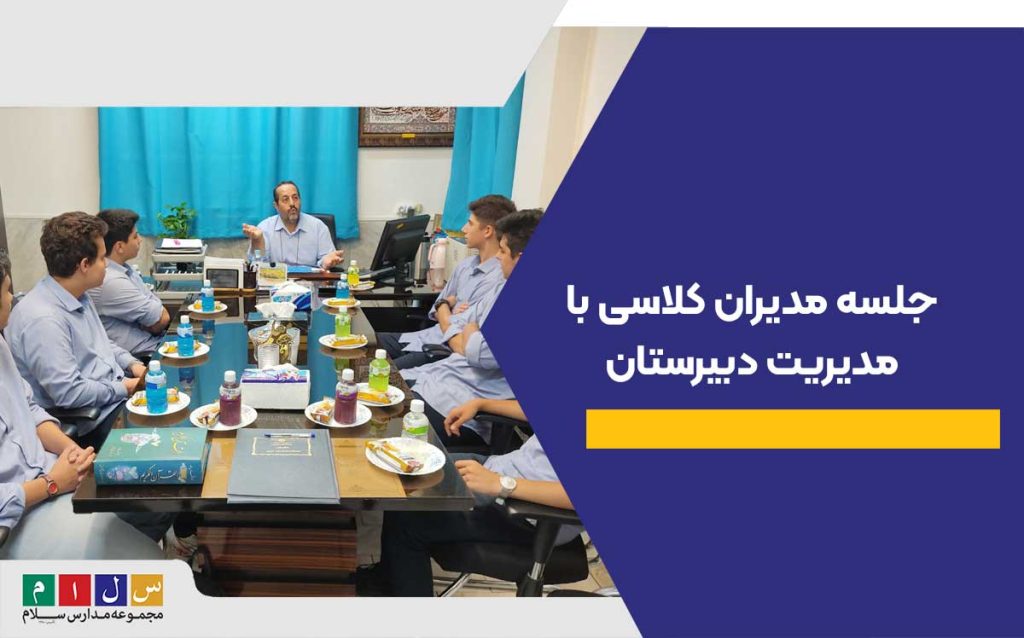 نشست مدیران کلاسی با مدیریت محترم دبیرستان و بیان نقطه نظرات دانش آموزان عزیز در مورد مسائل جاری مدرسه